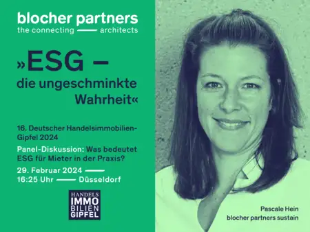 In der Immobilienbranche ist ESG mittlerweile zum Dauerbrenner avanciert. Der 16. Deutsche Handelsimmobilien-Gipfel widmet sich zwei Tage lang in hochkarätig besetzten Podien neuen Aspekten sowie zukunftsweisenden Handels- und Immobilienkonzepten. Am 29.02. wird unter der Moderation von Pascale Hein, Geschäftsführerin blocher partners sustain, im Panel »ESG – die ungeschminkte Wahrheit« diskutiert, was ESG für Mieter in der Praxis bedeutet.