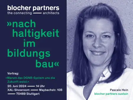 Pascale Hein wird am 20. Juni um 14 Uhr im XAL-Showroom einen Vortrag halten. Im Rahmen des Roadshow-Haltes des österreichischen Leuchtenherstellers in Stuttgart wird unsere Geschäftsführerin eine Keynote zum Thema Nachhaltigkeit im Bildungsbau halten, und warum das DGNB-System wegweisend ist.