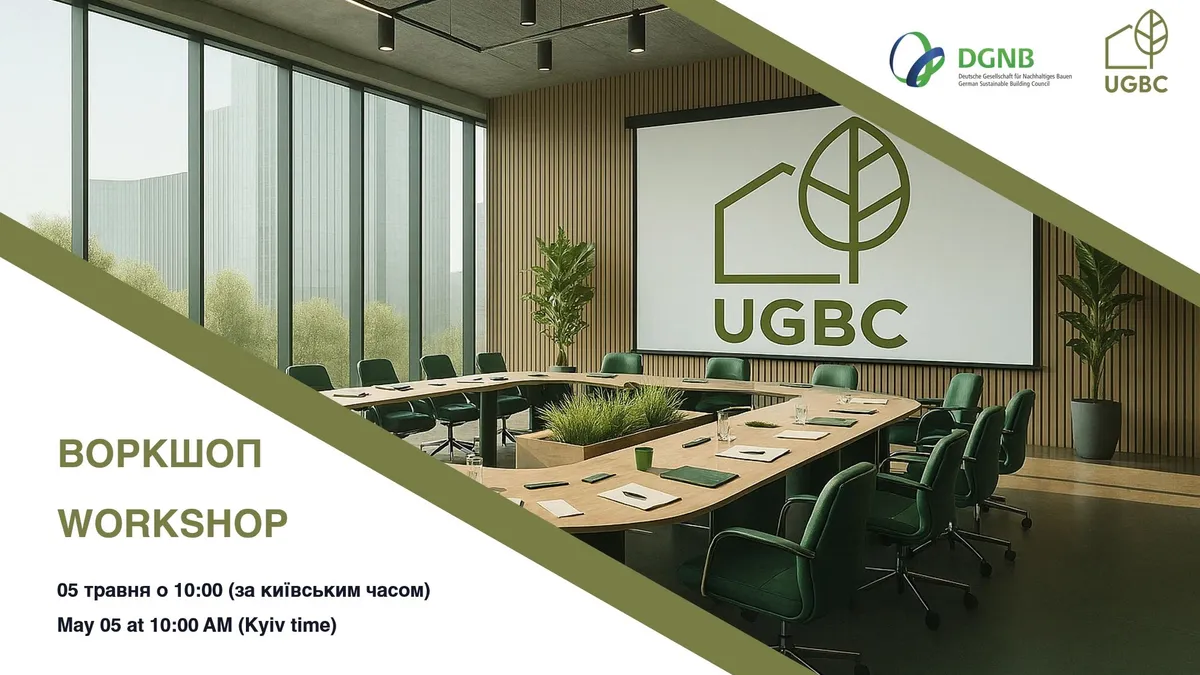 Wir sind dabei! Unsere Geschäftsführerin Pascale Hein spricht am Montag, 5. Mai, 10 Uhr, beim Workshop „Unlocking Opportunities for Implementing EU Sustainability Guidelines“ des Ukrainian Green Building Council (UGBC) in Lviv. Ihr Thema: „The Financial Value of Sustainable Building“. Sie zeigt auf, wie EU-Taxonomie und das DGNB-Zertifizierungssystem nachhaltige Bauprojekte ökonomisch stärken.