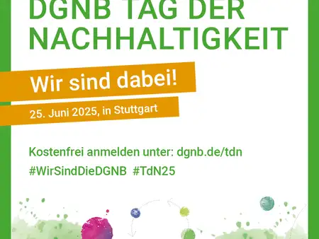 Am Mittwoch, 25. Juni, sind wir beim DGNB German Sustainable Building Council Tag der Nachhaltigkeit im Wizemann in Stuttgart. Dieses Event mit Bühnen- und Netzwerkprogramm bietet inspirierende Impulse und spannende Gespräche. Besonders freuen wir uns auf den Austausch "Marktplatz der Ideen", wo innovative Ansätze vorgestellt werden.
